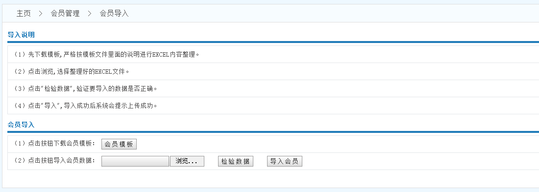 會員模板------>錄入數(shù)據(jù)------>點擊瀏覽------>檢驗數(shù)據(jù)------>導入會員------>導入成功