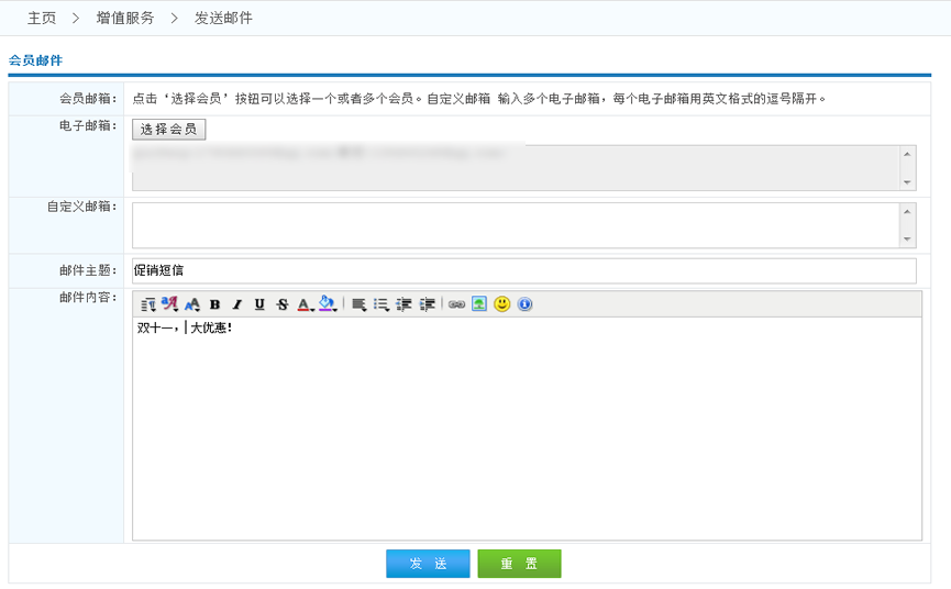 2.自定義郵箱:也可以不通過系統(tǒng)會員獲取郵箱,也可以自己編寫郵箱列表 以逗號隔開