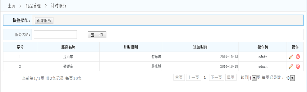 規(guī)則列表:展示系統(tǒng)內(nèi)設(shè)置的所有的服務(wù)項目 (操作一欄 可以對每條規(guī)則進行修改和刪除 )