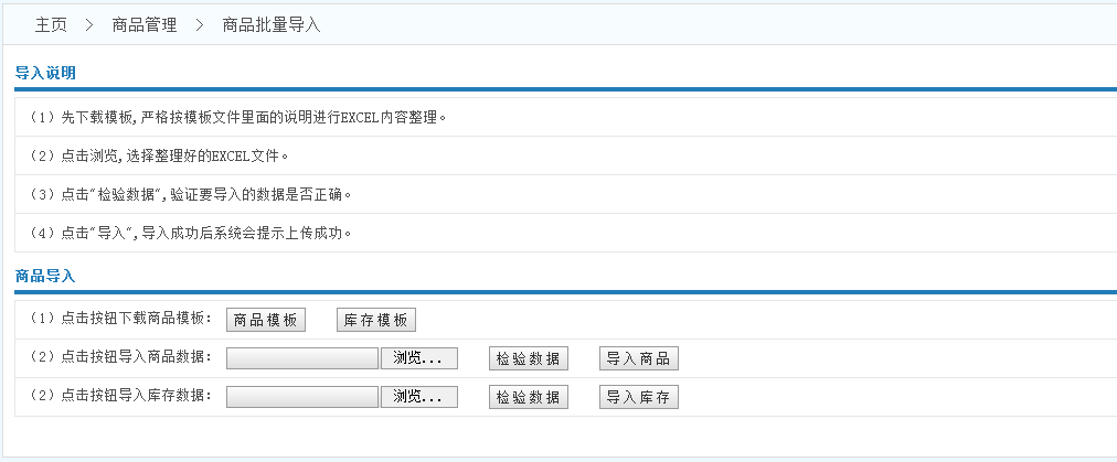商品批量導入:點擊進入商品批量導入界面 如下圖: