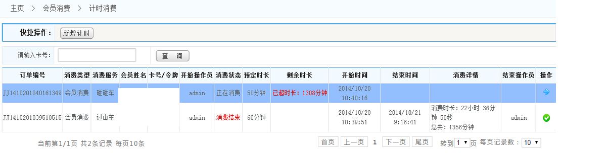 顯示:點(diǎn)擊菜單欄的計(jì)時(shí)消費(fèi),將進(jìn)入如下界面, 此頁面顯示的是計(jì)時(shí)消費(fèi)的詳細(xì)列表