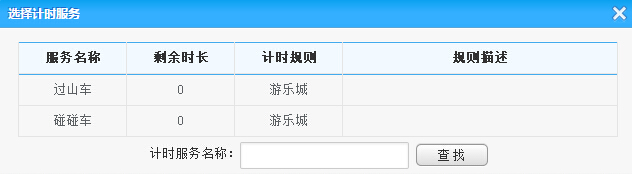 通過刷卡或者是查找定位到會(huì)員信息,點(diǎn)擊選擇服務(wù)按鈕將彈出計(jì)時(shí)服務(wù)列表框,從其中選擇計(jì)時(shí)服務(wù),輸入預(yù)訂消費(fèi)時(shí)長(zhǎng)后(可選)點(diǎn)擊消費(fèi)開始,便開始計(jì)時(shí)消費(fèi),同時(shí)計(jì)時(shí)消費(fèi)列表也將添加此條消費(fèi)記錄,選擇計(jì)時(shí)服務(wù)對(duì)話框如下: